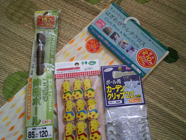 つっぱり棒やカーテンクリップの数、布のサイズなんかは、取り付けたい場所のサイズに合わせて調節します。