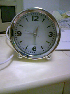 100円で買ってきた目覚まし時計なんですが、秒針がカチカチいうので、鳴らないように改造しようと思って分解したら、壊れてしまいました(笑)
