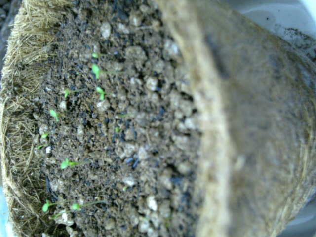 土を押しのけて、頭に種をかぶって、にょきにょき成長してます。