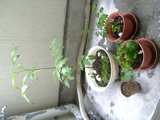 パセリってもっとこんもり生えるもんだと思ってたのですが、ひょろひょろ~っと茎が伸びて、ちょっと貧弱な感じ。これでいいのかなぁ?
