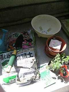 百均の植木鉢とスコップで、土と苗と種は、近くのホームセンターでGetしてきました(=∩_∩=)